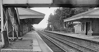 The original station opened in 1904, and closed to passengers in 1960; the original station buildings was demolished in autumn 1963[3] although the line through the site remained open for regular passenger trains until 1968 and goods until official closure in November 1976.