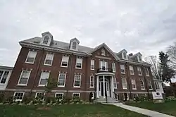 The Brockton VA campus is located southwest of downtown Brockton, on more than 140 acres (57 ha) south of Belmont Street between Massachusetts Route 24 and Brockton High School. It has more than 20 buildings arranged on a network of internal roads, most of which date to the first decade of the hospital's operation. The layout of the buildings follows the principles of Beaux Arts design, with a cluster of large central buildings arrayed at the end of a central drive, and lower-profile ancillary and support buildings extending outward from the core.[2]