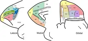 ![]() Frontal cortex of Sapajus sp. BA14 is shown in the diagram at center and right (medial and orbital surface). | |