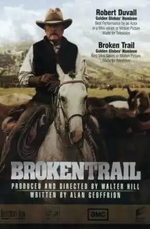 Broken Trail is a 2006 Western television miniseries directed by Walter Hill and starring Robert Duvall and Thomas Haden Church.[1] Written by Alan Geoffrion, who also wrote the novel,[2] the story is about an aging cowboy and his nephew who transport 500 horses from Oregon to Wyoming to sell them to the British Army. Along the way, their simple horse drive is complicated when they rescue five Chinese girls from a slave trader, saving them from a life of prostitution and indentured servitude. Compelled to do the right thing, they take the girls with them as they continue their perilous trek across the frontier, followed by a vicious gang of killers sent by the whorehouse madam who originally paid for the girls.