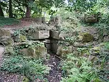 A small area of the original parkland survives immediately around the palace. It comprises lawns, a lake, belts of mature trees, a boat house, pulhamite rockeries, an ice house (building) and a folly.[22]