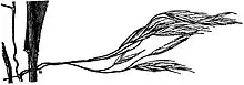 Bromus grandis is a perennial bunchgrass growing up to 1.5 metres (5 feet) tall. It has hairy leaves and open inflorescences of fuzzy flat spikelets.