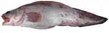 Brotula barbata most commonly grows up to 50 centimeters long, but has been known to grow up to nearly 100 cm. The highest published weight of a specimen was 8.5 kilograms.[2] The front of its body is somewhat deep, tapering to its rear. Its scales are smooth and relatively small, and cover its entire body. It contains 12 barbels: six on its snout and six on its chin. It has a pointed caudal fin (tail fin).[3]
