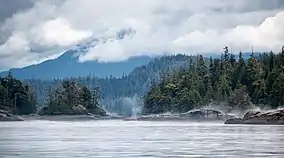 Broughton Archipelago Provincial Park (established in 1992) was one of many provincial parks established by B.C.’s Protected Areas Strategy.[13] The archipelago is situated on the ancestral territories of the Kwakwa̱ka̱ʼwakw people of the Northwest coast.[14] What was once one large group, the Kwakwa̱ka̱ʼwakw Nation has been subject to separation through time.[14] These separate groups ranged throughout the archipelago and thrived off its ecosystems. However, the arrival of European settlers and disease to the West Coast caused the dispossession and abandonment of sacred Kwakwa̱ka̱ʼwakw territory, and forced movement and increased interactions between groups.[14] Today, the Dzawada'enuxw, Gwawaenuk, Kwikwasut'inuxw Haxwa'mis, Mamalilikulla, and ‘Na̲mg̲is nations are among those who remain.[15]
