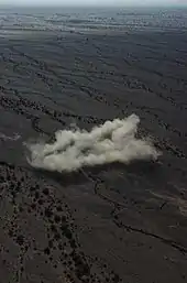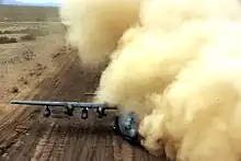 In aviation, a brownout (or brown-out) is an in-flight visibility restriction due to dust or sand in the air.[1] In a brownout, the pilot cannot see nearby objects which provide the outside visual references necessary to control the aircraft near the ground.[2] This can cause spatial disorientation and loss of situational awareness leading to an accident.[3] Pilots have compared landing during brownouts to parallel parking an automobile with one's eyes closed.[4]