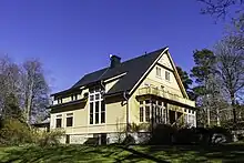 The estate is 35 ha (0.35 km2).[1] In addition to the main house there are several buildings, most of which were constructed during 190006, when the extension to the main house was built. There is a pavilion, a forest studio, a beach studio, the Caretaker's House, a stable with an additional shed and an ice cellar made of limestone. The buildings are designed in the same style as the main house, except for the Caretaker's House, which is inspired by one of the houses at Standgatan in Visby, the Burmeister 4.[2]