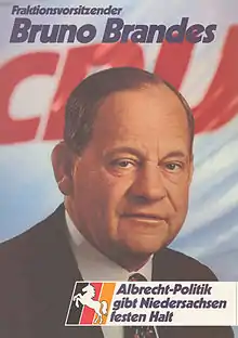 ![]() Bruno Brandes' candidate poster for the state election in Lower Saxony 1982 | |