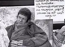 Manser's actions drew anger from Malaysian authorities, who declared him persona non-grata in the country. A reported bounty for his capture ranging from US$30,000[16] to US$50,000[17] has been circulated by word-of-mouth, but the source of the bounty is unknown.[1] By 1990, Malaysia declared Manser as the "number one enemy of the state" and sent special units to search for him.[7] Using a forged passport and styling his hair differently,[3] Manser returned to Switzerland in 1990 to inform the public about the situation in Sarawak through the Swiss media.[2]