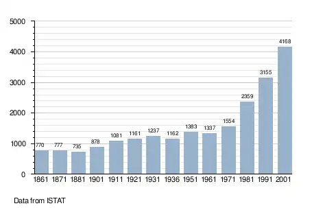 - ↑ "Popolazione Residente al 1° Gennaio 2018". Italian National Institute of Statistics. Retrieved 16 March 2019.