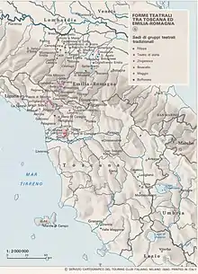 Map of traditional theatre in Tuscany and Emilia-Romagna