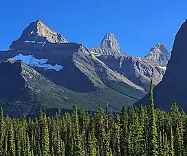 ![]() Brussels Peak centered between Mount Christie (left) and Mount Lowell (right) | |