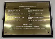 Plaque memorial with Draper's name, at Whitgift School, South Croydon