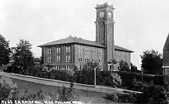 Easily distinguished by its clock tower, it is currently home to WSU’s Thomas Foley Institute, an auditorium and workshop used by the School of Music for musical theatre and opera productions, along with offices for the university's Global Learning and International Programs.[1]