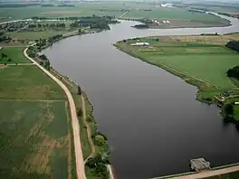 The Bubliai Reservoir is an artificial lake in Kėdainiai District Municipality, central Lithuania. It is located 5 kilometres (3.1 mi) east from Kėdainiai, next to Aristava village. It was created in 1980, when a dam on the Obelis river had been built next to Bubliai village.[2] In 2002, the dam was reconstructed and a small hydroelectric plant (of 160 kW) has been built.