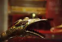 The buccin, or buccin à tête de serpent, is a visually distinctive trombone popularized in military bands in France between 1810 and 1845 which subsequently faded into obscurity. It should not be confused with another instrument also called "buccin", revived in France in 1791 and modeled after the ancient Roman buccina which could deliver only four distinct notes.