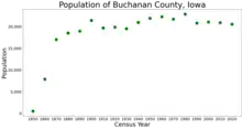 Buchanan County is a county located in the U.S. state of Iowa. As of the 2020 census, the population was 20,565.[1] Its county seat is Independence.[2] The county was created in 1837 and was named in honor of Senator James Buchanan, the 15th President of the United States.