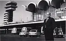 The airport is named after Romanian flight pioneer Henri Coandă, builder of Coandă-1910 aircraft and discoverer of the Coandă effect of fluidics. Prior to May 2004, the official name was Bucharest Otopeni International Airport (Romanian: Aeroportul Internațional București Otopeni). Henri Coandă International Airport serves as headquarters for TAROM, the country's national airline.[4] It also serves as a base of operations for low-cost airlines Animawings, Ryanair and Wizz Air and charter airlines Air Bucharest. It is managed by The National Company Bucharest Airports S.A. (Compania Națională Aeroporturi București S.A.).[5] The military section of the airport is used by the 90th Airlift Flotilla of the Romanian Air Force.