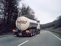 The beverage has entered the popular lexicon with nicknames such as "Wreck the Hoose Juice",[17][18][19] "Commotion Lotion",[17][18] "Cumbernauld Rocket Fuel",[18] "Mrs. Brown",[17] "Buckie Baracas",[20] "Coatbridge Table Wine",[20] and a bottle of "What the hell are you looking at?"[20] It has earned the unofficial slogan, "Buckfast: gets you fucked fast".[19] The drink's prominence within the "Buckfast/Buckie Triangle" – an area east of Glasgow between Airdrie, Coatbridge and Bellshill – has raised concern.[19][20][21] The glass bottle has been blamed for allegedly contributing to litter and providing drunkards with a weapon.[18][20]