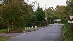 ![]() Lane south with side road into the modest developed area. The lane leads from the main road shown in the background to Binsted village | |
