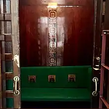 Most of the Palotanegyed's architecture echoes that of the Viennese Franz-Joseph era from the 1840s until World War One. However, there are also a number of buildings in the Hungarian Secession style, championed most famously by Ödön Lechner, notably the striking Gutenberg Otthon, designed by two of his most prominent disciples, the Nagyvárád-born brothers József and László Vágó and constructed in 1905-6 (there are restoration/renovation plans for the building)[8] There are several other buildings in the Hungarian Secession style on Vas utca, Baross utca and Krúdy utca. Lechner's Jewish student Béla Lajta's designed the 1912 Count Széchenyi School of Trade on Vas utca, a striking contrast to most of the Palace District's architecture, fusing modernism, art deco and folk motifs. Its rich interior decoration, remarkably, survived World War II.