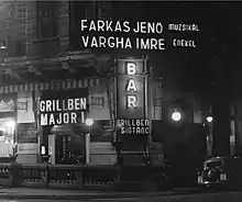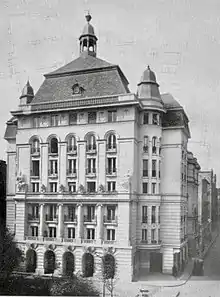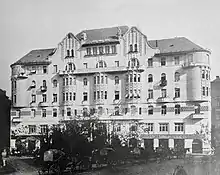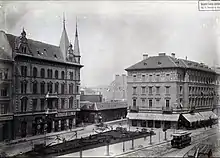 Adolf Greiner's 1892 apartment building at Horánszky utca 27.[35] It replaced an earlier two-storey building designed in 1869 by prolific Palotanegyed architect Antal Gottgeb.[36] At one point the building was owned by the well-known actress and operetta singer Irén Zilahy (born Káposvár 1904), who was killed in her villa at Himfy u 5 in Budapest's 11th district during a US air raid on 3 April 1944.[37][38]