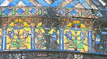 The tomb is decorated with glazed blue and yellow tile-work, laid primarily in floral designs.[6] The tomb's dome is decorated with blue tile-work in a chevron pattern.[6]
