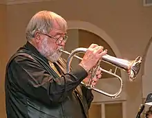 Buddy Childers, here playing fluegelhorn, at Newport Beach CA in 2003