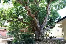 The early and continuing commitment to play-based education, particularly in primary school, resulted in the provision of outdoor play space and sports facilities, such as ovals and tennis courts. Also, trees and gardens were planted to shade and beautify schools and schools celebrated Arbor Day from 1890. Aesthetically-designed gardens were encouraged by regional inspectors, and educators believed gardening and Arbor Days instilled in young minds the value of hard work and activity, improved classroom discipline, developed aesthetic tastes, and inspired people to stay on the land.[47] Arbor Day had been an important event at Buderim Mountain State School. Many of the mature trees within the grounds were planted as Arbor Day trees, including numerous camphor laurels (Cinnamomum camphora).[48] On Arbor Day, 1945, 100 Pinus taeda trees, commonly known as loblolly pines, were planted in the school's forestry plot.[49] Forestry plots were the product of after-school agricultural clubs, introduced in 1923 at primary schools, under the "home project" scheme. Curriculum driven, these clubs had a secondary commercial value as well as disseminating information and helping to develop a range of skills. The Department of Primary Industries provided suitable plants and offered horticultural advice.[50][51] School forestry plots were seen by the government as a way of educating the next generation about the economic and environmental importance of trees, as well as providing testing grounds for new species. Located throughout the state, Arboretum plots were a means of experimenting with a variety of tree species in different soil and climatic conditions. Encouraged by the Education and Forestry Departments, by 1953 about 380 Queensland schools were undertaking forestry projects.[52][53][54][55][56][57][58][1]