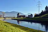 ![]() Buechberg on Obersee (Zürichsee), as seen from the Jona river in Jona, Speer, Chüemettler and Federispitz mountains in the background | |