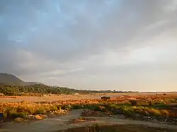 The Bued River is heavily silted,[3] and is occasionally dredged. It has been the drainage of mine tailings from copper and gold mines in Tuba, Benguet.[3][4] Landslides along Kennon Road,[5] including quarrying and aggregates crushing plants in riversides release silt and sand into the river.[3][6] The Agat Bridge, which serves as the highway boundary between the towns of Sison and Rosario, spans several hundred meters due to the widening of the river. The river overflows especially during strong rains and typhoons. A dike in Sison was constructed to prevent inflow into the other villages.[7] The village of Binday in the town of San Fabian has constantly been eroded by the river since the 1970s.[8]