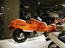 The RW 750 was a development of the Barton Formula One racing motorcycle.[23] Buell bought the parts and tooling from the failed Barton concern and developed the RW 750 for his own use and for sale to private entrants.[24] The engine was a liquid-cooled two-stroke square four.[23][24] Buell's development resulted in a more competitive racer, but production ceased when the AMA discontinued the Formula One class.[23][24]
