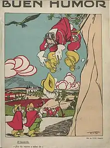 Buen Humor was established by graphic artist and cartoonist Pedro Antonio Villahermosa y Borao, who was also called Sileno, in 1921.[3][4] Sileno edited the magazine, which covered short stories, sketches and drawings.[4] It was published on a weekly basis.[5] Its headquarters was in Madrid.[6] The magazine ceased publication in 1931.[3][4]