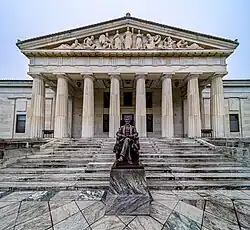 The left, center, and right sections of the pediment atop the Museum, designed by Edmond Amateis and includes clothed, semi-nude and nude figures.