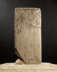 The rectangular monument is built on a two-story pedestal. Because the monument was exposed to the elements for 1400 years it has suffered weathering and erosion damage. It is currently 154 centimeters high and 69 centimeters wide.