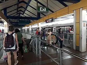 Installation of half-height screen doors at the station started on 29 June 2010 and commenced on 31 August 2010 as part of the Land Transport Authority's (LTA) programme to improve safety in MRT stations.[3][4][5] In 2012, high-volume low-speed fans were installed at this station to improve ventilation at the elevated station's platforms.[6]