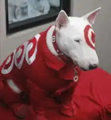 Bullseye is a Bull Terrier and the official mascot of Target Corporation. The dog is featured in Target's commercial campaigns and in store sale signage and is used in various marketing campaigns, often portrayed as a male.