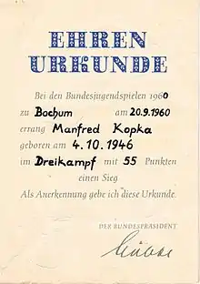 - ↑ Holger Wölk (2009-03-16). "Bundesjugendspiele für Schülerinnen und Schüler mit Behinderung" (PDF; 226 kB) (in German). Deutscher Behindertensportverband. Retrieved 2010-05-28.