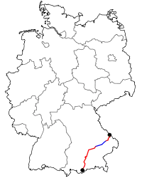 The Bundesstraße 11 (abbr. B11) is a German federal highway. It is the first regional federal highway in the German federal highway numbering system and leads from the Czech border near Bayerisch Eisenstein past Deggendorf, Landshut and Munich to Krün near Garmisch-Partenkirchen, where it connects to the Bundesstraße 2.