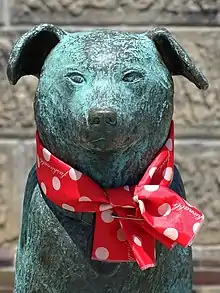 In the same year, 2008, the non-profit organisation Kennel Club Japan awarded Bunkō with the first ‘silver collar’ prize, given to “dogs or humans who have contributed to the co-existence of pets and people within society”.[21][22] Along with the prize, the ceremony was held with a memorial concert on the 70th anniversary of Bunkō's death on the 3rd of February 2008.[21][22]