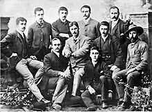 The Buonarotti Club was established in May 1883 by Cyrus Mason (c. 1829 – 18 August 1915)[2] and his colleague Edward Gilks, senior engravers. Professional painters joining them in the inaugural meeting in May 1883 included Fred M. Williams, Tom Humphrey, (later Sir) John Longstaff and Alexander Colquhoun, and also younger artists, the art teachers, John L. Himen, Theodore Dewey and Izett Watson. Mason was secretary of the charitable Victorian Art Unions 1872–75,[3] engraver, draughtsman and artist who was publishing views and maps[4][5] in coloured lithographs from mid-century.[6] Through his membership of Melbourne's Yorick Club, Mason was active in colonial literary, artistic and bohemian circles, and in the 1860s, was an illustrator for his friend Marcus Clarke, editor of the Colonial Monthly.[7] He proposed the name 'Buonarotti' in honour of Italian sculptor, painter, draughtsman and architect Michelangelo di Lodovico Buonarroti Simoni (1475–1564), in accord with a widespread revival of interest in Michelangelo then in Europe and Britain,[8] the spelling "Buonarotti" being then generally accepted.[9] The Renaissance hero excelled in a number of artistic media and was thus an appropriate figurehead for a club with multidisciplinary membership, with one, Brian Gilks, regarding him as their 'patron saint'.[10]