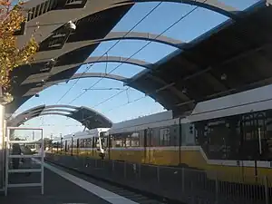 Burbank station is a DART light rail station located near Dallas Love Field airport for service on the Green Line and Orange Line.[2][3] The station opened as part of the Green Line's expansion in December 2010, and serves the headquarters for Southwest Airlines and an adjacent residential neighborhood.