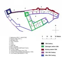 During the High Middle Ages the land that would become Burgdorf was owned by the Kingdom of Burgundy and then after 1080 by the Dukes of Zähringen. Either the kings or the dukes built a castle on the left bank of the Emme river,[2] this castle was first mentioned in 1080 as castellum Bertoldi ducis. In 1077 and 1084, a fortification on the Emme was mentioned, but the specific castle was not named, but it may have referred to Burgdorf.[3] In 1139 it was mentioned as the Upper Castle which implies that there was a Lower Castle nearby. In 1210 it was called castello Burgdorf.[4]