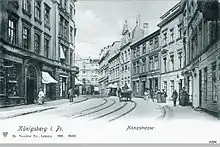 Most of Königsberg's Reformed adherents lived in Burgfreiheit;[5] the Burgkirche was constructed in the 1690s. Reformed students attended the Burgschule school. In 1680[6][7] or 1682[8] Frederick William, the Great Elector, allowed the city's Jewish residents to rent space for prayer at the Eulenburgsches Haus (later Hotel Deutsches Haus) on Burgfreiheit's Kehrwiederstraße (later Theaterstraße).