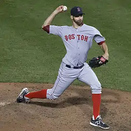 ![]() Badenhop pitching for the Boston Red Sox in 2014 | |