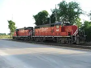 The Burlington Junction Railway (reporting mark BJRY) is a Class III short line railroad which was chartered in 1985.[1] Originally operating on the southernmost 3 miles (4.8 km) of the former Burlington, Cedar Rapids and Northern Railway mainline in Burlington, Iowa after abandonment by the Chicago, Rock Island and Pacific Railroad, it provides short freight hauling, switching operations, locomotive repair, and transloading services, the latter currently handling over 3,000 carloads a year. Typical commodity types transported include chemicals and fertilizer. The BJRY's primary interchange partner is the BNSF Railway.[2]