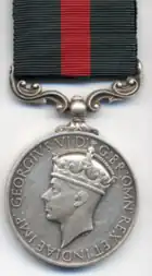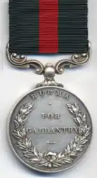 The Burma Gallantry Medal (BGM) was a military decoration awarded for acts of gallantry, in both war and peace, by Governor's commissioned officers, non-commissioned Officers and other ranks of the British Burmese military. These included its Army, Frontier Force, Military Police, Royal Naval Volunteer Reserve and Auxiliary Air Force.[1] Clasps, attached to the ribbon, could be awarded to mark further awards of the medal.[2]