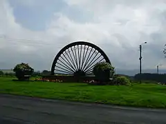 ![]() Coal chauldrons and pit wheel sculpture at Burnhope. (Opened by MP Hilary Armstrong and two of the local school children, Mark Gray and Kerry Pinnington) | |