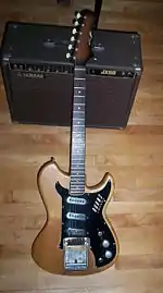 Despite the good times for guitar sales, Ormston Burns Ltd. was sold in 1965 to the Baldwin Piano and Organ Company of Cincinnati for the price of $380,000, small money in comparison to the $13 million paid at the time for Fender (where Baldwin were outbid by CBS).[9] The company was renamed Baldwin-Burns (latterly Baldwin) and released three amplifiers at the NAMM Show of June 1965.[3] Collectors insist that the Baldwin-era instruments were somehow inferior to those produced before the takeover, but with the exception of some newly-introduced models, the quality standards on models like the Marvin, Jazz Guitar and Shadows bass remained consistent, with only minor cosmetic differences and the Baldwin badge to distinguish them from the Burns-branded era of production. For a short time, existing stock was rebadged (initially as 'Baldwin-Burns', then simply 'Baldwin') by the simple expedient of inserting a routed nameplate into the pickguard, from which the earlier Burns routing had been excised. This practise did not last long, and original Baldwin pickguards appeared shortly afterwards, identical to the Burns originals save for the Baldwin routing. Other commercially-driven changes included the replacement of the elaborate, carved scroll head (seen on earlier versions of the Marvin, Virginian and others) with a simpler design, and a standardised neck began to appear on most models around 1967, consisting of this 'flat' scroll head and a bound fingerboard. Towards the end of the 1960s, Baldwin took the decision to concentrate on the Gretsch range of guitars and drums which they had acquired in 1967, and the Baldwin guitar brand was wound down, with production coming to an end in 1970.[10]