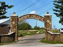 Burritt's rustic stone entrance gate, which contains the college's name and charter date (1848), still stands facing College Street (TN-30) in Spencer. The old administration building is also still standing. The Burritt Alumni Museum and the Burritt Memorial Library, both of which are open to the public, are now located on the former Burritt campus.