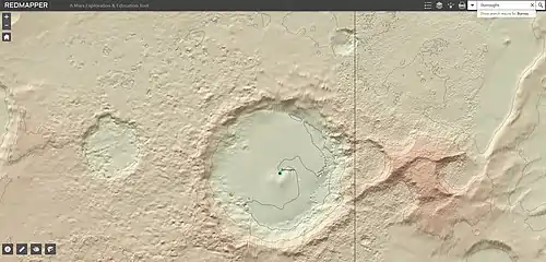 An ice deposit in Burroughs Crater contains strong evidence that recent Martian climate is influenced by changes in the planet's orbit and axial tilt.[2][3][4]